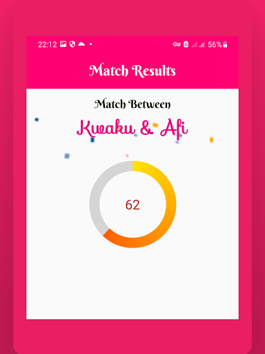 Love Match By Name está en la parte superior de la lista de Citas aplicaciones de categoría en Google Playstore. Tiene muy buenos puntos de calificación y críticas. En la actualidad, Love Match By Name para ventanas ha superado 10.000 Aplicación instalaciones and 0 estrella puntos de calificación agregados promedio del usuario.