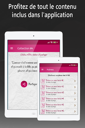 citations coeur brisé در بالای لیست قرار دارد سرگرمی دسته بندی برنامه ها در گوگل پلی استور امتیاز و نقدهای واقعاً خوبی دریافت کرده است. در حال حاضر, citations coeur brisé برای ویندوز گذشت 10,000 برنامه تاسیسات and 0 ستاره میانگین امتیازات مجموع کاربران.