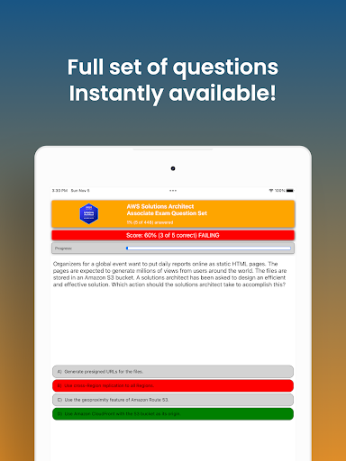 AWS Solutions Architect Exam در بالای لیست قرار دارد آموزش دسته بندی برنامه ها در گوگل پلی استور امتیاز و نقدهای واقعاً خوبی دریافت کرده است. در حال حاضر, AWS Solutions Architect Exam برای ویندوز گذشت 1,000 برنامه تاسیسات and 0 ستاره میانگین امتیازات مجموع کاربران.