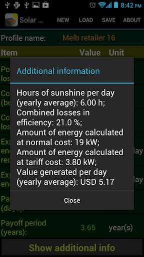 Solar Payoff Calculator Pro برای کامپیوتر - مشخصات فنی