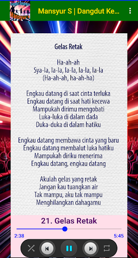 Dangdut Kenangan Mansyur S est en haut de la liste des Musique et audio applications de catégorie sur Google Playstore. Il a de très bonnes notes et critiques. Actuellement, Dangdut Kenangan Mansyur S Pour les fenêtres a dépassé Application installations and 0 Star points d'évaluation globaux des utilisateurs moyens.