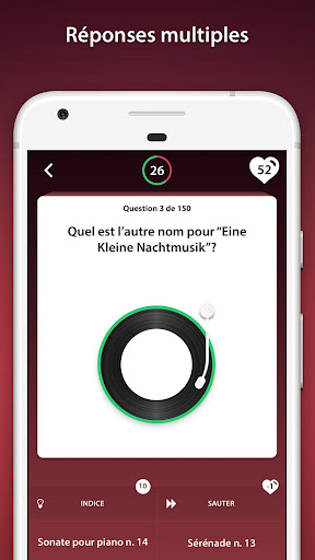 Quiz Musique Classique est en haut de la liste des Divertissement applications de catégorie sur Google Playstore. Il a de très bonnes notes et critiques. Actuellement, Quiz Musique Classique Pour les fenêtres a dépassé 100 000 Application installations and 4 Star points d'évaluation globaux des utilisateurs moyens.