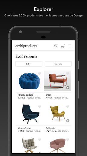 Archiproducts est en haut de la liste des Shopping applications de catégorie sur Google Playstore. Il a de très bonnes notes et critiques. Actuellement, Archiproducts Pour les fenêtres a dépassé 10 000 Application installations and 0 Star points d'évaluation globaux des utilisateurs moyens.