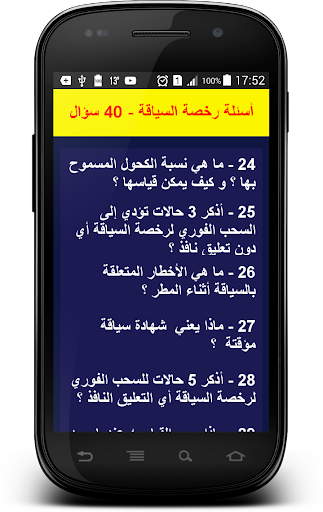 | नाम | أسئلة رخصة السياقة 2 - 40 سؤال |