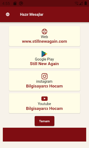 | नाम | Hazır Metin ve Resimli Mesajla |