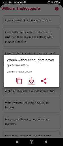 William Shakespeare and Saying अपने सरल लेकिन प्रभावी इंटरफ़ेस के साथ इसे अत्यधिक लोकप्रियता मिली है। हमने स्थापित करने के लिए दो सर्वोत्तम विधियों को सूचीबद्ध किया है William Shakespeare and Saying पीसी विंडोज लैपटॉप पर. उल्लिखित दोनों एमुलेटर पीसी पर ऐप्स का उपयोग करने के लिए लोकप्रिय हैं। पाने के लिए आप इनमें से कोई भी तरीका अपना सकते हैं William Shakespeare and Saying पीसी विंडोज 11 या विंडोज 10 के लिए.