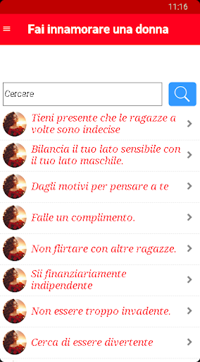 Fai innamorare una donna è in cima alla lista di Lifestyle app di categoria su Google Play Store. Ha punti di valutazione e recensioni davvero buoni. Attualmente, Fai innamorare una donna per Windows ha superato 10.000 applicazione installazioni and 0 stella punti di valutazione aggregata dell'utente medio.
