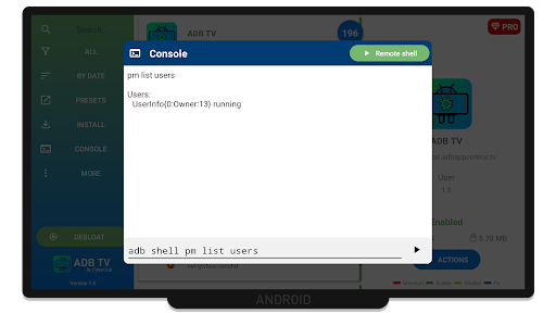ADB TV: App Manager è in cima alla lista di Strumenti app di categoria su Google Play Store. Ha punti di valutazione e recensioni davvero buoni. Attualmente, ADB TV: App Manager per Windows ha superato applicazione installazioni and 4.6 stella punti di valutazione aggregata dell'utente medio.