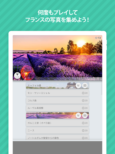 あそんでまなべる フランス地図パズル のリストの一番上にあります 教育 GooglePlayストアのカテゴリアプリ。それは本当に良い評価ポイントとレビューを持っています。現在, あそんでまなべる フランス地図パズル Windowsの場合 乗り越えた 10,000 ゲーム インストール and 0 星 ユーザーの平均評価ポイント.