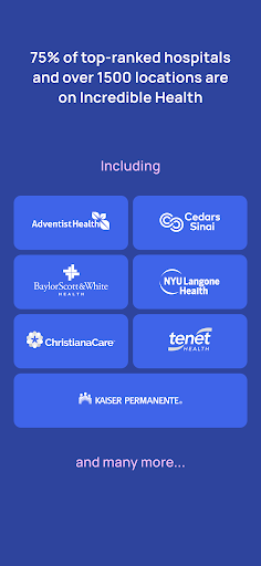 Incredible Health のリストの一番上にあります ビジネス GooglePlayストアのカテゴリアプリ。それは本当に良い評価ポイントとレビューを持っています。現在, Incredible Health Windowsの場合 乗り越えた アプリ インストール and 0 星 ユーザーの平均評価ポイント.