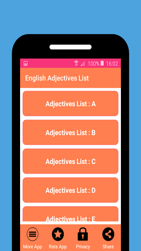 English Adjectives List のリストの一番上にあります 教育 GooglePlayストアのカテゴリアプリ。それは本当に良い評価ポイントとレビューを持っています。現在, English Adjectives List Windowsの場合 乗り越えた アプリ インストール and 0 星 ユーザーの平均評価ポイント.