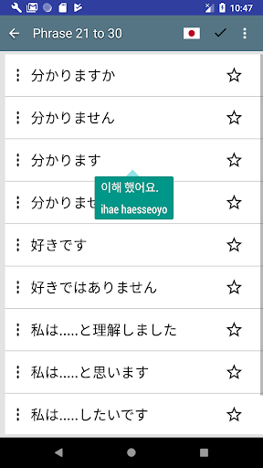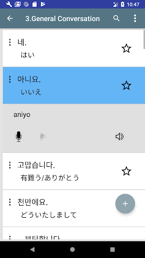 毎日の韓国語のフレーズ - 韓国語を学ぶ のリストの一番上にあります 教育 GooglePlayストアのカテゴリアプリ。それは本当に良い評価ポイントとレビューを持っています。現在, 毎日の韓国語のフレーズ - 韓国語を学ぶ Windowsの場合 乗り越えた 500,000 アプリ インストール and 4.8 星 ユーザーの平均評価ポイント.