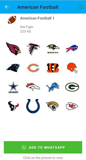 - 3단계: 지금 검색 American Football Stickers 앱 구글 플레이 스토어에서. 공무원 찾아라 앱 에서 DevTiger 개발자 및 설치 버튼을 클릭하십시오.
