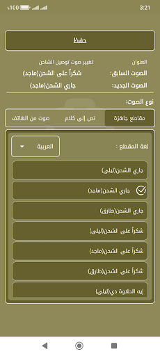 | 이름 | نطق صوت عند توصيل الشاحن |