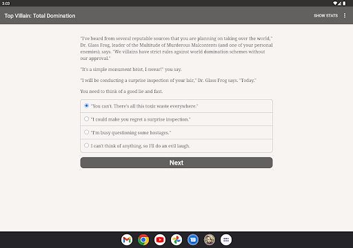 - 3단계: 지금 검색 Top Villain: Total Domination 게임 구글 플레이 스토어에서. 공무원 찾아라 게임 에서 Choice of Games LLC 개발자 및 설치 버튼을 클릭하십시오.