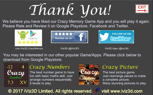 - 3단계: 지금 검색 Crazy Memory 게임 구글 플레이 스토어에서. 공무원 찾아라 게임 에서 iViz3D 개발자 및 설치 버튼을 클릭하십시오.