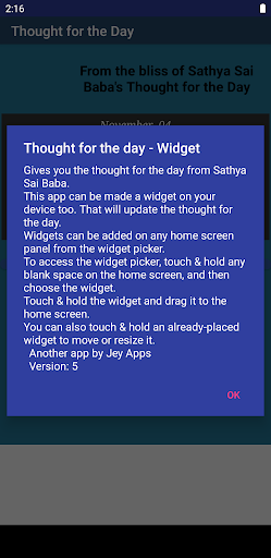 Sai thought for the Day 목록의 맨 위에 있습니다 라이프스타일 Google Play 스토어의 카테고리 앱. 그것은 정말 좋은 평가 점수와 리뷰를 가지고 있습니다. 현재, Sai thought for the Day 윈도우용 넘어왔다 앱 설치 and 0 별 평균 사용자 총 평점.