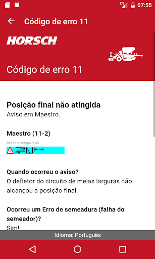 | Nome | Solução de erros HORSCH |