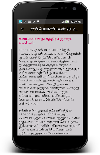 Sani Peyarchi Palankal 2017 - อยู่ในอันดับต้นๆ ของรายการ ไลฟ์สไตล์ แอพหมวดหมู่บน Google Playstore ได้คะแนนเรตติ้งและรีวิวดีมาก ปัจจุบัน, Sani Peyarchi Palankal 2017 - สำหรับวินโดว์ ได้ผ่านไปแล้ว แอป การติดตั้ง and 0 ดาว คะแนนการให้คะแนนโดยรวมของผู้ใช้โดยเฉลี่ย.