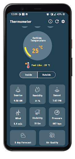เครื่องวัดอุณหภูมิอุณหภูมิห้อง อยู่ในอันดับต้นๆ ของรายการ พยากรณ์อากาศ แอพหมวดหมู่บน Google Playstore ได้คะแนนเรตติ้งและรีวิวดีมาก ปัจจุบัน, เครื่องวัดอุณหภูมิอุณหภูมิห้อง สำหรับวินโดว์ ได้ผ่านไปแล้ว 10,000 แอป การติดตั้ง and 0 ดาว คะแนนการให้คะแนนโดยรวมของผู้ใช้โดยเฉลี่ย.