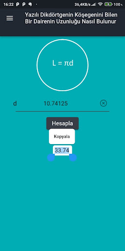 | İsim | Daire Çevresi Hesaplayıcı |