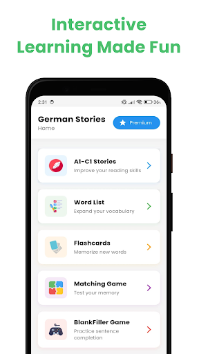 Learn with German Stories listesinin başında yer alıyor Eğitim Google Playstore'daki kategori uygulamaları. Gerçekten iyi derecelendirme puanları ve incelemeleri var. Şu anda, Learn with German Stories pencereler için aştı 5,000 Uygulama tesisler and 3.9 Yıldız ortalama kullanıcı toplam derecelendirme puanları.