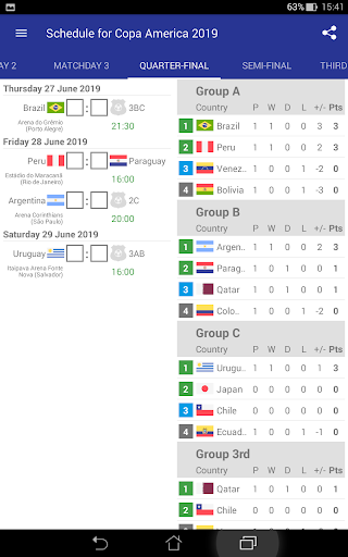 Schedule for Copa America 2019 Brazil Windows PC'de