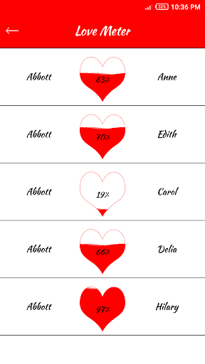 Love Meter listesinin başında yer alıyor Eğlence Google Playstore'daki kategori uygulamaları. Gerçekten iyi derecelendirme puanları ve incelemeleri var. Şu anda, Love Meter pencereler için aştı 5,000 Uygulama tesisler and 0 Yıldız ortalama kullanıcı toplam derecelendirme puanları.
